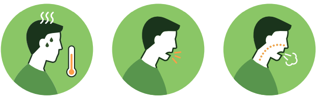 Os sintomas mais comuns são febre e tosse ou dificuldade para respirar.