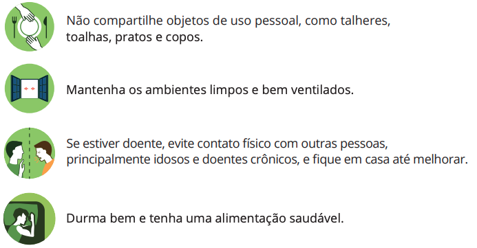 • Se você está com sintomas de gripe, fique em casa por 14 dias e siga as orientações do Ministério da Saúde para o isolamento domiciliar.